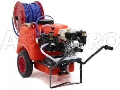 - Baricentro molto basso che garantisce eccezionale stabilità in ogni condizione (con avvolgitubo, con diversi tipi di motopompe, su terreno accidentato, ecc…)