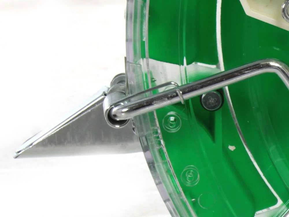 All’apice del rullo è presente il contenitore in plastica per le semenza, che ha una capacità di 8,5 kg. La è cosiderata una macchina robusta e con ottime capacità performanti. La è in lega di alluminio, e la ruota posteriore in plastica spessa e resistente. il braccetto della ruota posteriore è unito alla macchina tramite due molle che facilitano parecchio la spinta.