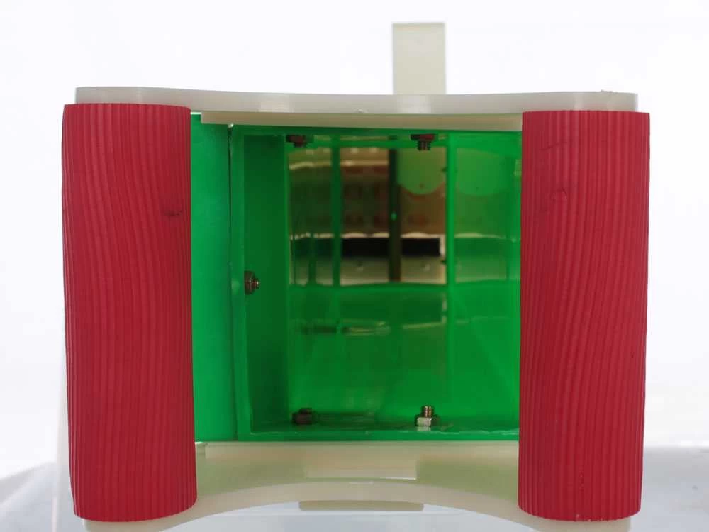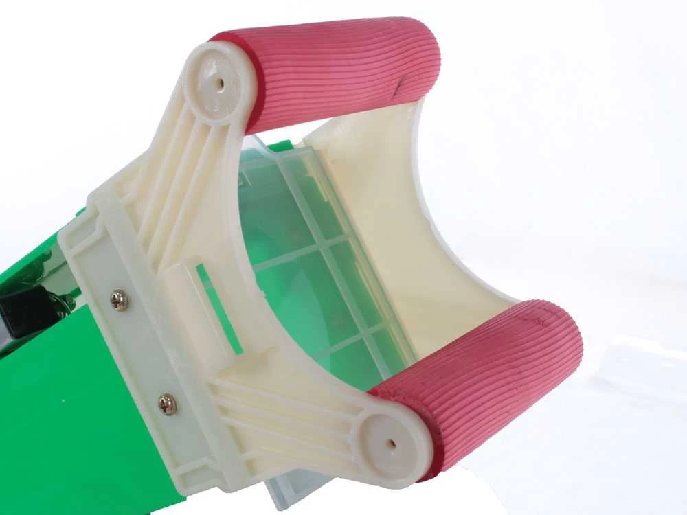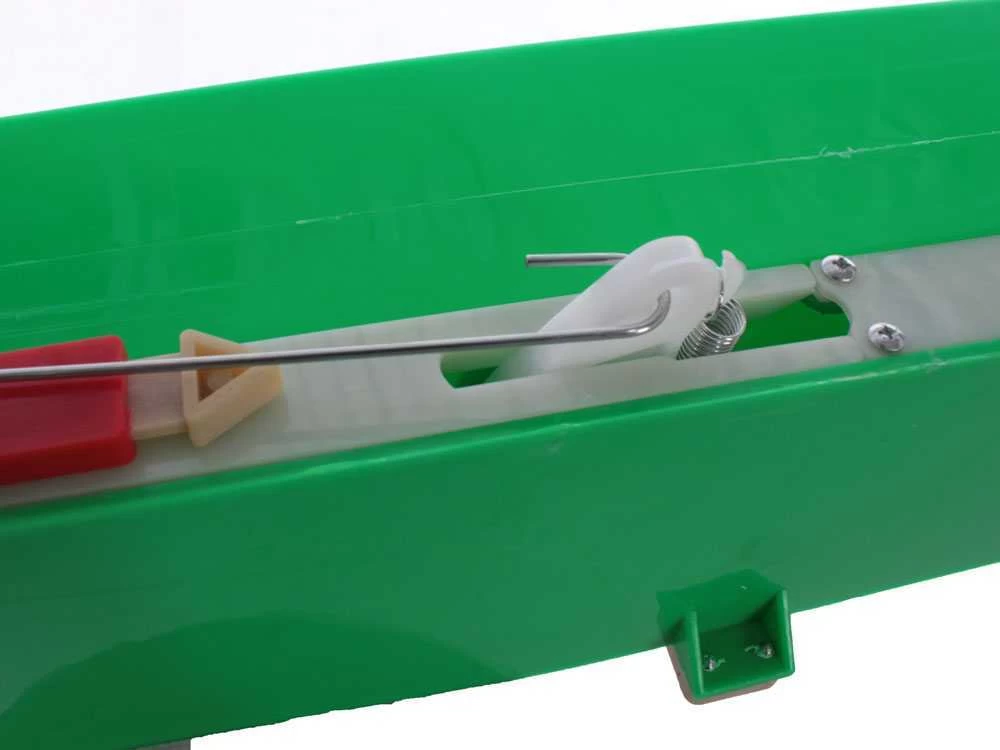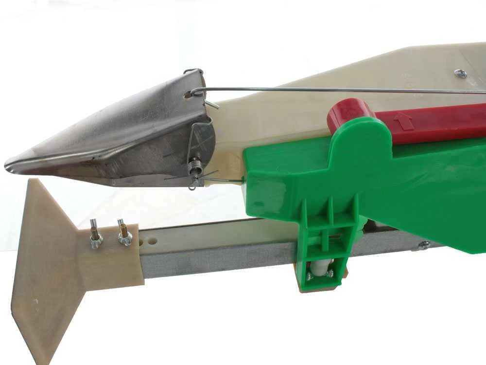 Realizzata con robusto e leggero. E’ formata da un corpo cavo rettangolare in plastica con una maniglia ergonomica all’apice collegata con un sistema a molla alla tramoggia spargiseme. Quest’ultima, tramite suddetto sistema, si apre e chiude con la semplice pressione verso il suolo.