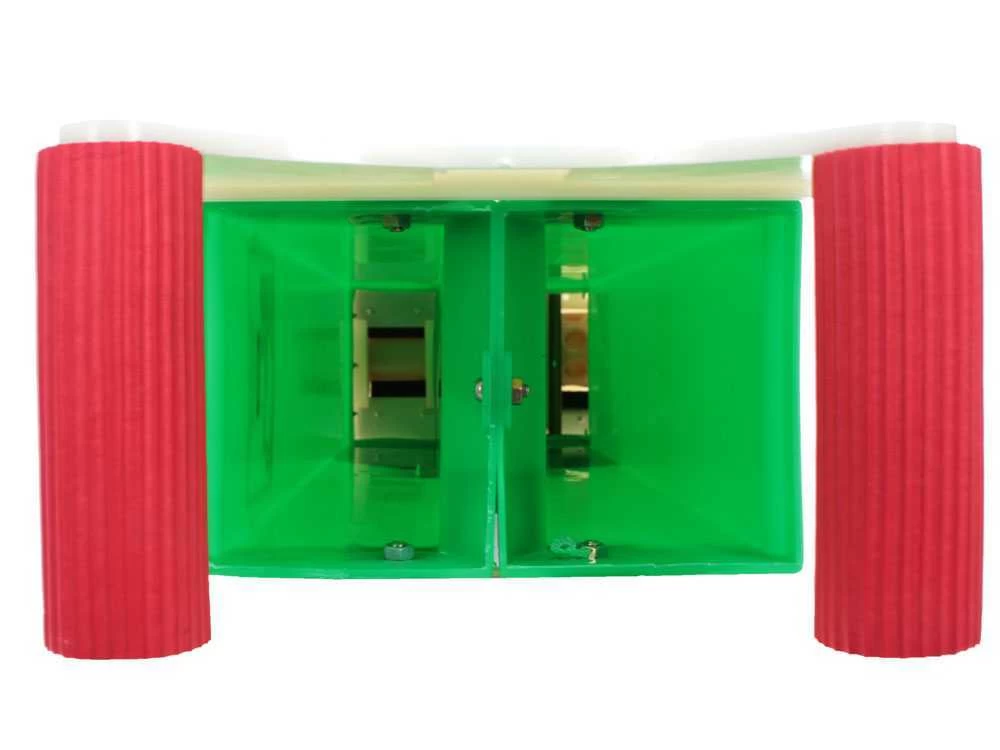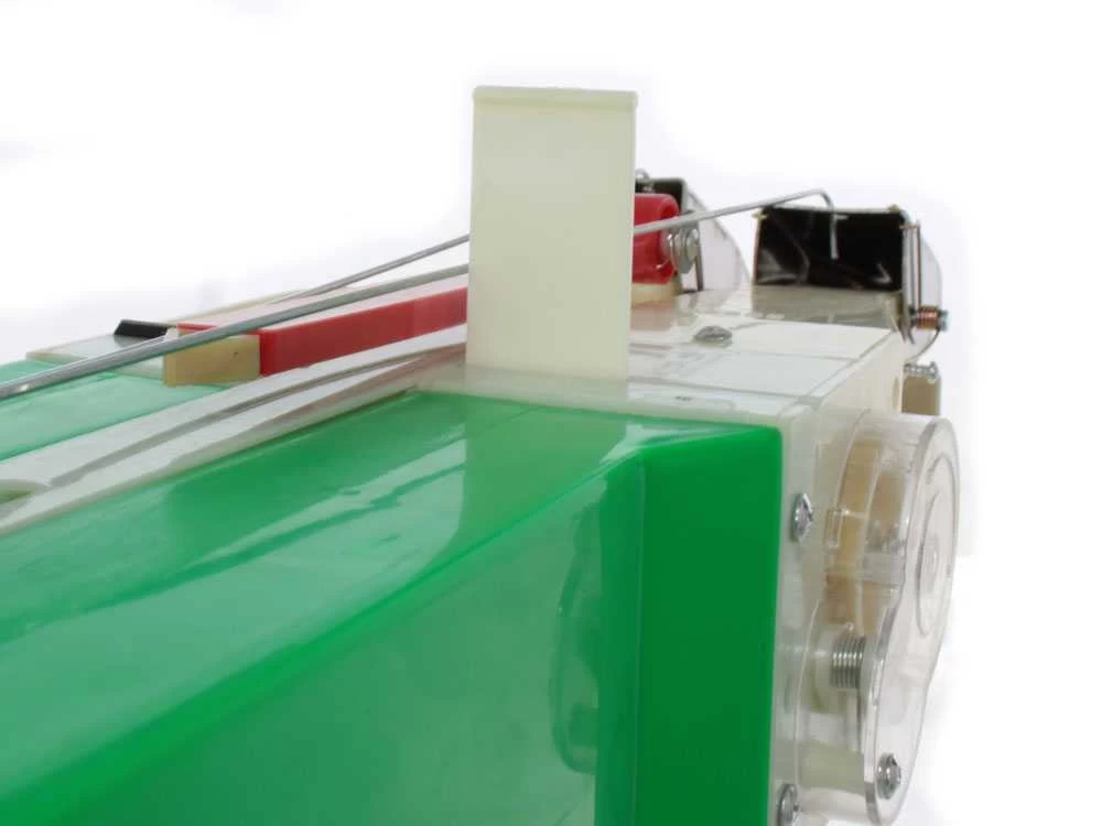 Realizzata con robusto e leggero. E’ formata da un corpo cavo rettangolare in plastica con una maniglia ergonomica all’apice collegata con un sistema a molla ai due puntali che erogano seme e concime. Quest’ultime, tramite suddetto sistema, si aprono e chiudono con la semplice pressione verso il suolo.