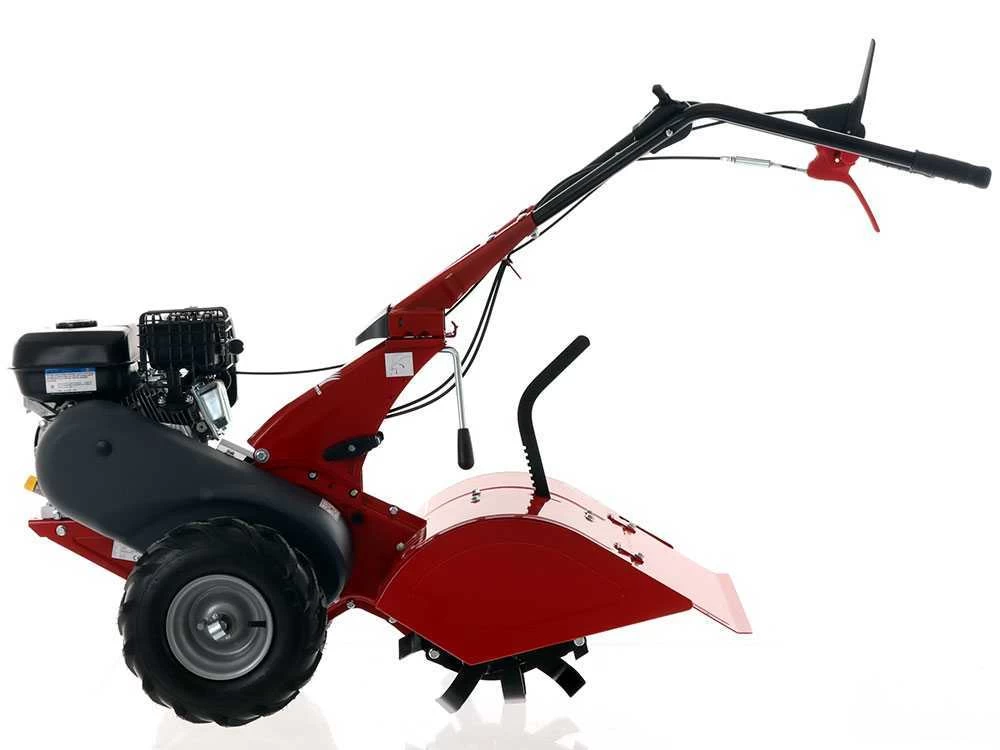 Dispone di trazione sulle ruote pneumatiche scolpite con profilo Tractor che garantiscono una motricità davvero buona, su terreni abbastanza livellati, non sassosi e soffici o già dissodati. La larghezza di ingombro limitata assicura una buona manovrabilita’ anche in spazi molto ristretti, mentre gli efficaci sistemi di antinfortunistica applicati al motocoltivatore ed il freno automatico di stazionamento garantiscono la massima sicurezza.