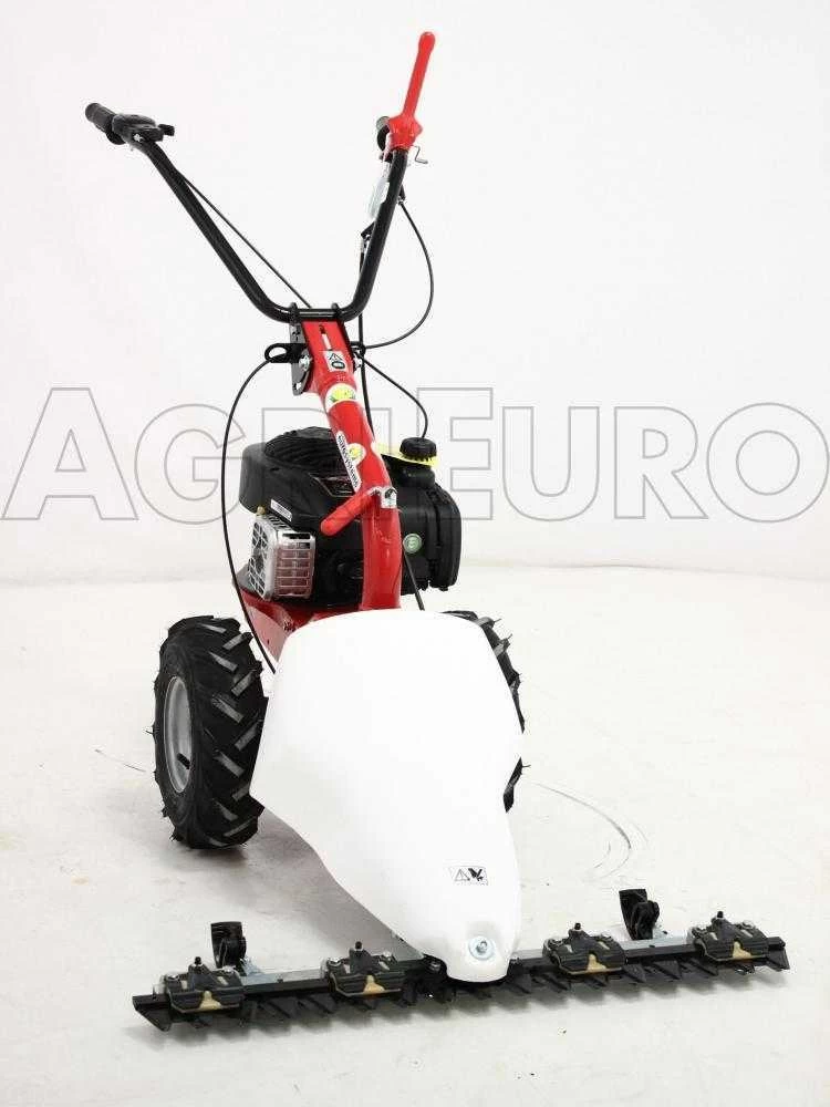 Questo la differenzia da tutte le motofalciatrici semoventi con motore a scoppio classiche sul mercato, proposte da tutti i vari produttori, che sono ancora dotate tutte di barra falciante movimento monolama (si muove solo la lama superiore, mentre la lama inferiore è fissa).