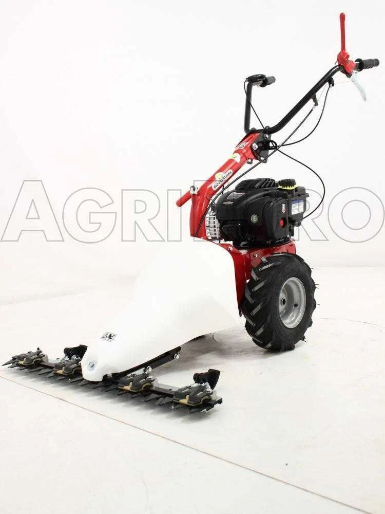 Motofalciatrice Eurosystems con taglio bilama, dotata di ruote pneumatiche scolpite trazionate, collegate ad una trasmissione a vite senza fine in bagno, dotata di unica marcia avanti. L’accessorio fornito di serie, è del tipo (sia la lama inferiore che quella superiore di cui è composta la barra si muovono ed in moto contrapposto).