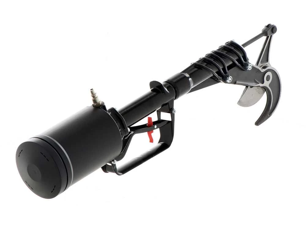 L’azionamento del forbicione avviene tramite la pressione sulla leva, previo sblocco della sicurezza palmare. L’energia di azionamento è fornita dall’aria compressa e inviata tramite tubazione all’ingresso aria.