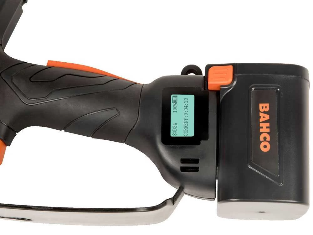 Il punto di forza di questo potatore a batteria è senza ombra di dubbio il pratico dal quale si può visualizzare la percentuale della carica e il numero delle ore di lavoro.