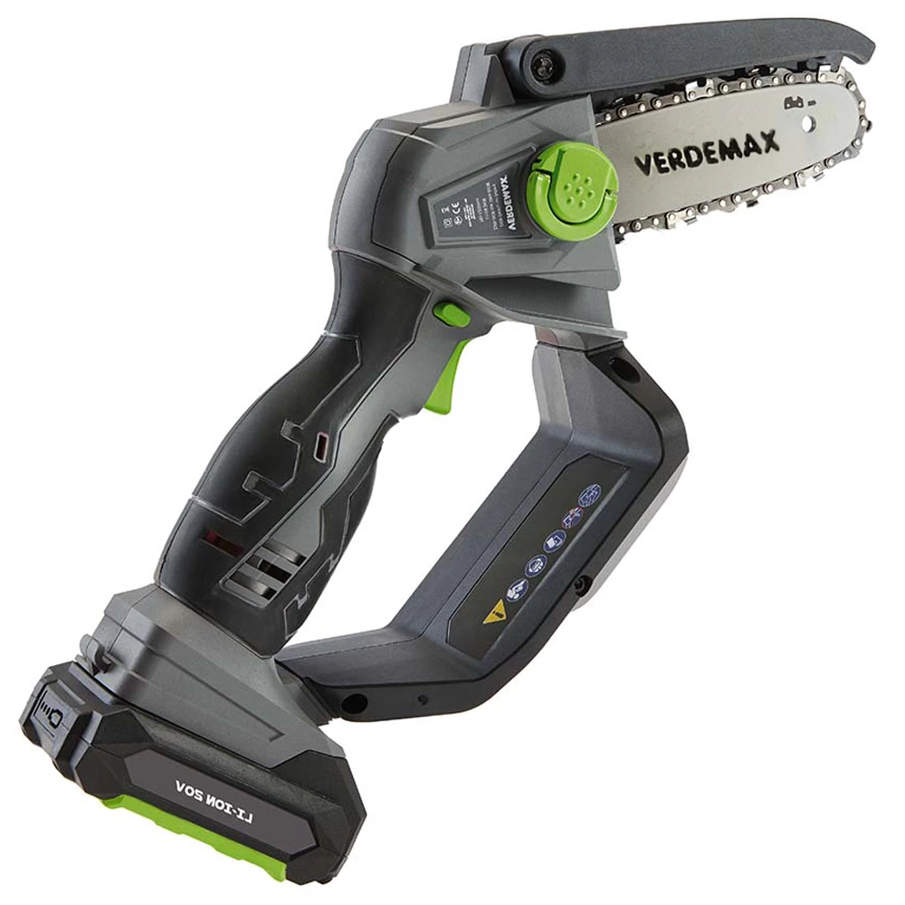 Monta una catena da con copertura protettiva e barra da e un’impugnatura ergonomica che grazie alla protezione per la mano conferisce maggiore sicurezza.