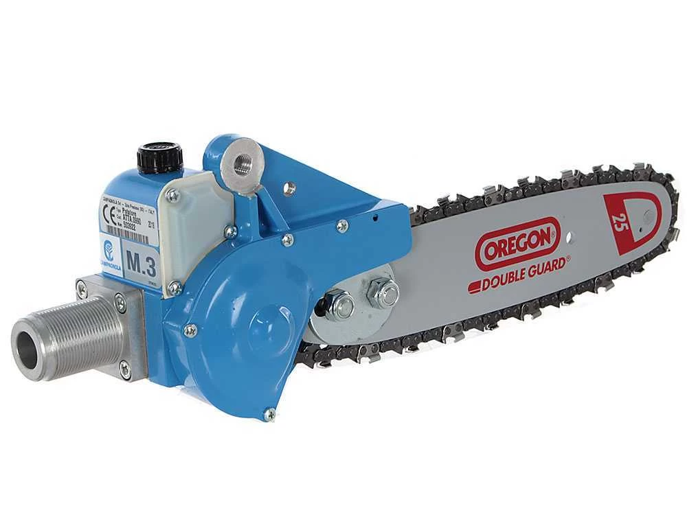 Il seghetto pneumatico a catena è un potatore molto versatile, utilizzabile su asta sia fissa che telescopica (previo l’acquisto degli accessori adatti).