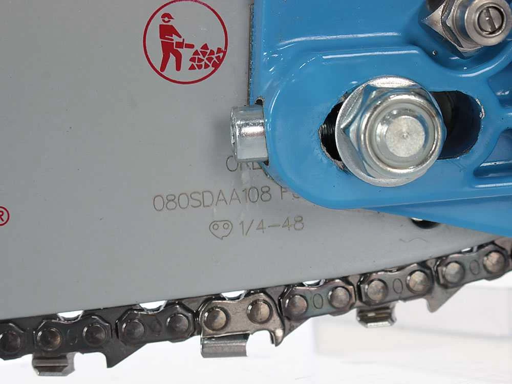 Catena con nuovo passo da 1/4″. Essa risulta nettamente più prestante rispetto alla tradizionale con passo da 3/8″, permettendo tagli molto più veloci
